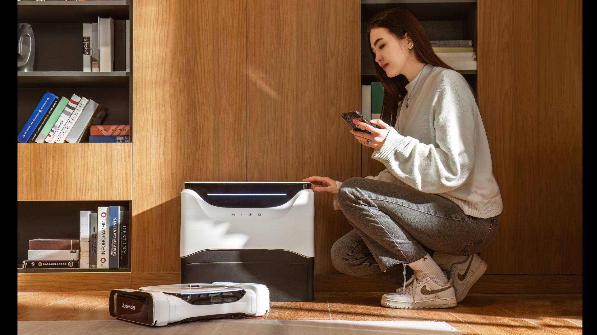 2.Ascender配备了一个全封闭的多功能基站,确保了儿童和宠物的安全。它还将灰尘收集噪音降低了15dB。防尘袋可以每60天更换一次,用于清洁水和废水的2.5升大型水箱可以使用30天。 拖布模块的热风干燥系统在70℃下工作,由于基站的全封闭设计,它可以在5-8分钟内完全干燥拖布。