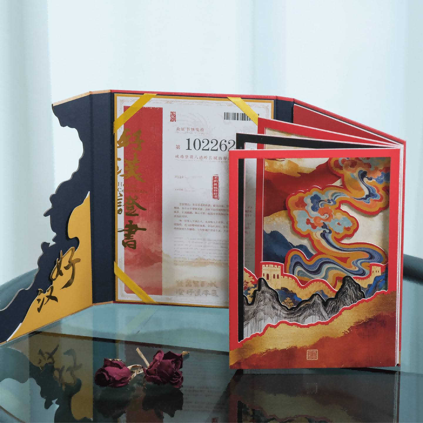 1.设计师将长城的磅礴气势浓缩于纸页之间:开合瞬间,山峦起伏的轮廓、矗立千年的烽火台、蜿蜒盘旋的城墙纹理一一浮现,宛如一座微型长城在掌心缓缓铺展。 门徒娱乐文创设计团队这波操作,给文化文创打了个样,文化遗产不需要“仰望”,需要的是“共情”当“登长城当好汉”从一句诗,变成好汉荣耀典藏册里的纸雕、勋章上的编号,长城文化就真正“活”在了当代人的生活里。