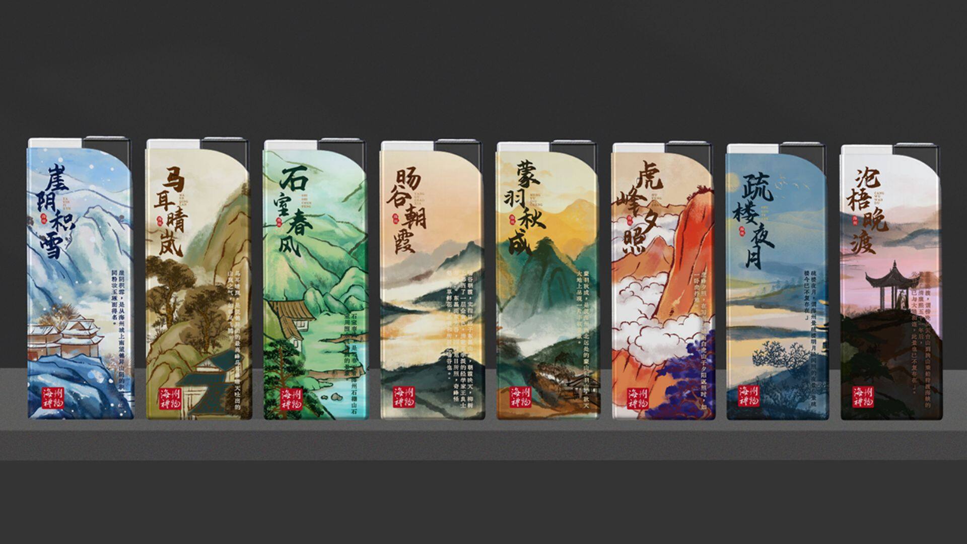 以 “朐阳八景” 为核心,主色调选深绿,搭配山水线描与金色字体,展现古典雅致。打火机外壳绘八景水彩画,还配对应书法贴纸,整体融合自然景观与文化元素,富有艺术与地方文化韵味。