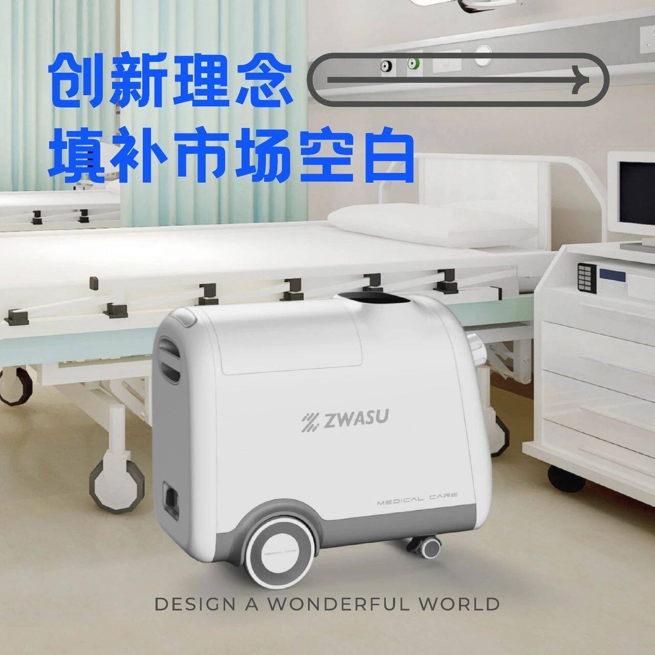 智能护理机器人的外观设计整体风格是专业医疗属性的,体现了其严谨稳定的工作状态。