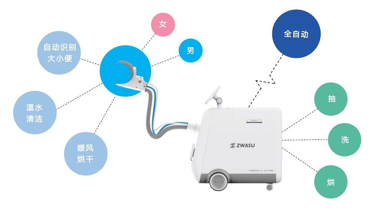 作为科技智能护理机器人通过人性化的方式,解决了患者的个人卫生问题,同时能更好地保护患者的尊严。产品自动化高,机器运行稳定,需要人工操作的部分很少,每天只需要一次维护机器的操作,减轻了护理人员的负担。
