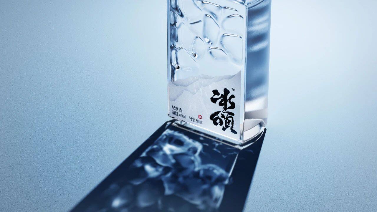 瓶身纹理运用水波纹造型,前后叠加形成冰块的观感。