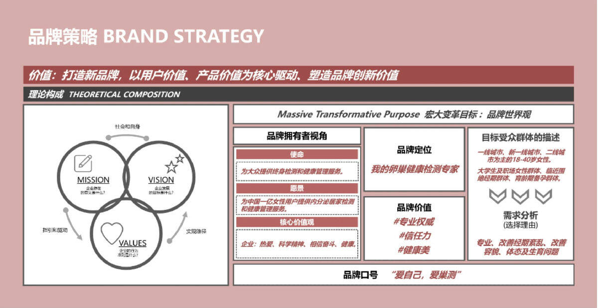 门徒娱乐团队配合 品牌方、医疗专家,历时8个月时间,共同进行竞品分析、自身解读及用户分析,并深度针对用户进行调研,定性调研200+用户及定量调研200+用户以及企业合作伙伴,最终输出中国首创的“女性居家精准微检测产品 卵巢健康度评估”的居家检测创新品类新品牌,并以此为基础输出品牌美学策略、包装设计。