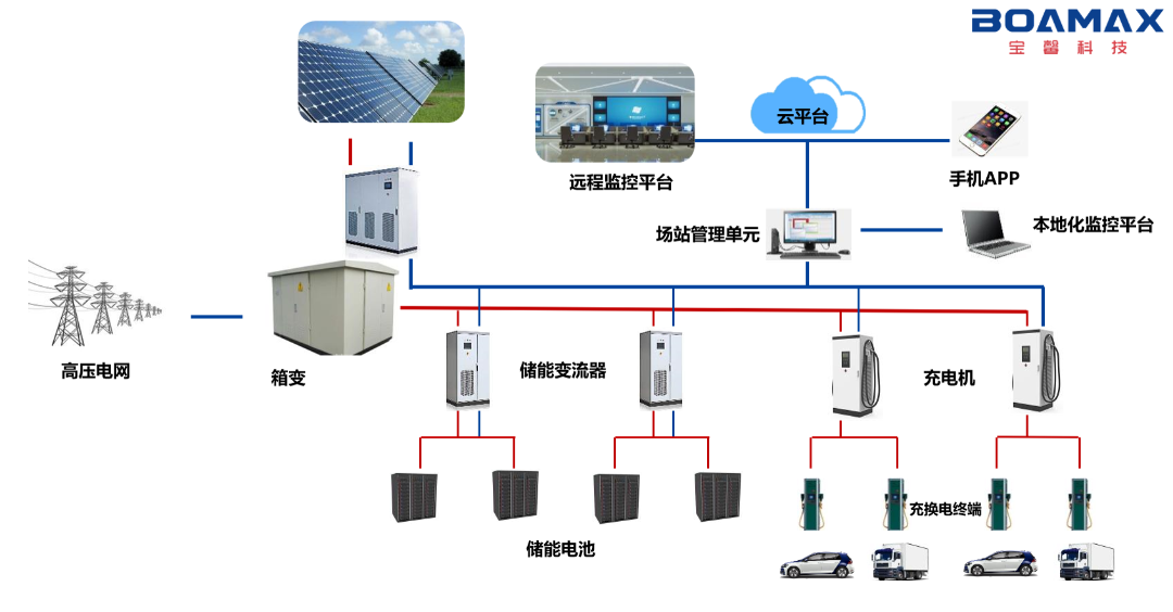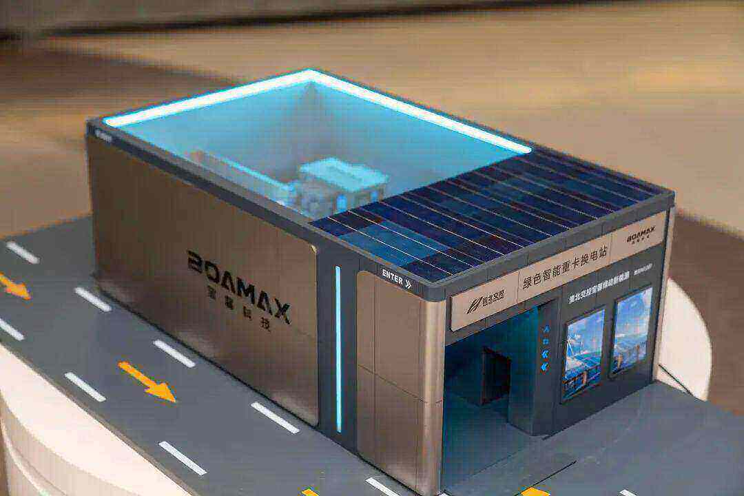 宝馨科技利用自己在光伏电池领域的积累,已经在多个城市落地了“光储充换”一体化示范项目,即为“光伏+储能+充/换电”,集成光伏发电、大容量储能电池、智能充电桩、重卡换电站等多项技术,其中光伏负责发电,充电桩与重卡换电站负责充/换电,储能是之间的桥梁。