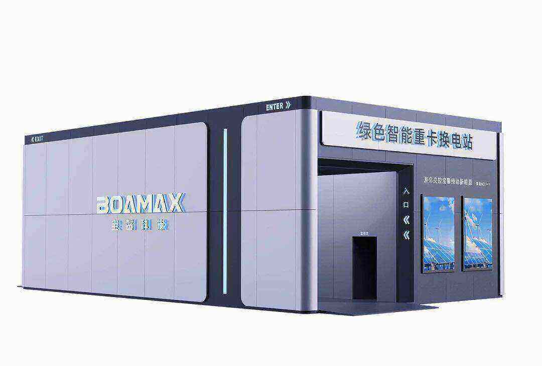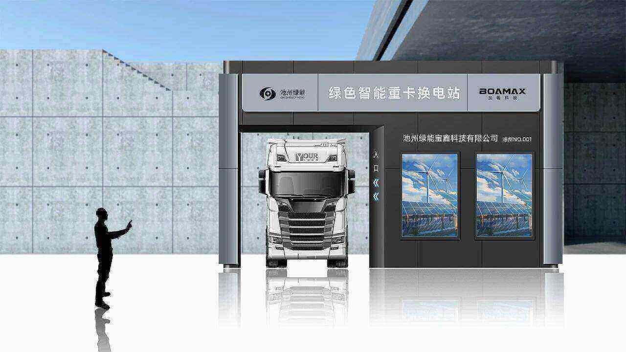 绿色智能重卡换电站通过全自动化机械臂操作快速完成新能源重卡的电池更换。同时,通过对铝塑板座位外壳进行模块化拼装,大大节约搭建成本以及运输成本。