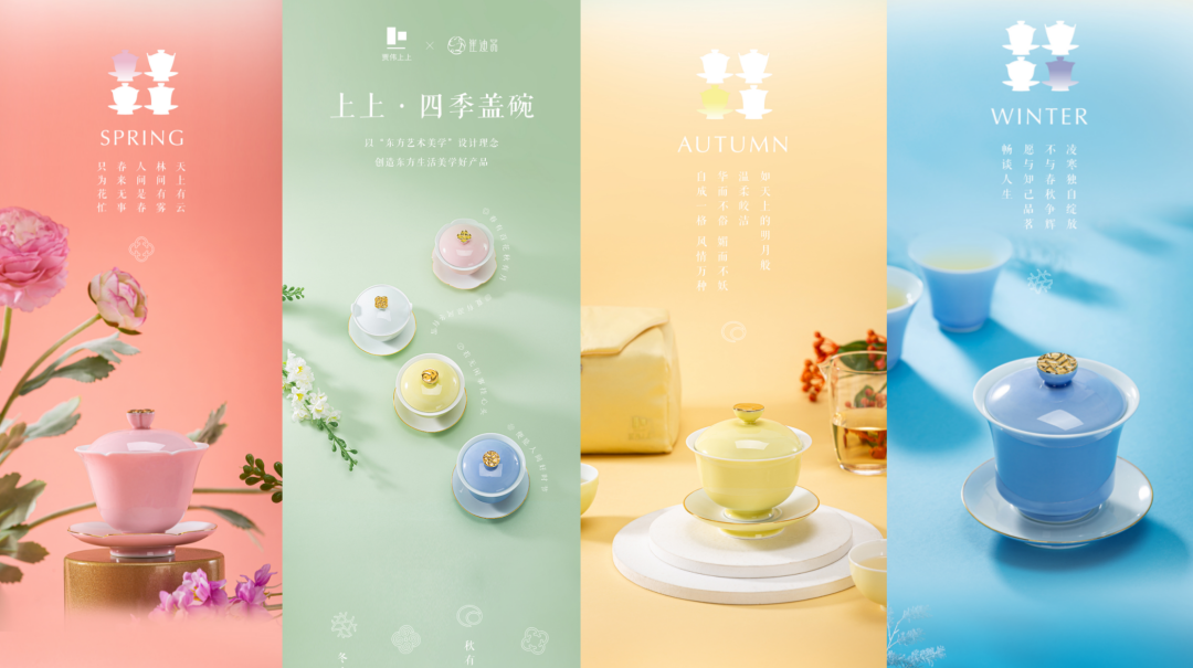 大会现场,贾伟还带来了十年磨一剑打造的“四季盖碗”作品,以“观自在”探讨商业美学,将春夏秋冬元素融入其中,每一个季节的盖碗都有独特的意境美。利用移情美学,将对自然的移情,表达为对生命的共情。春有百花,夏有凉风,秋有明月,冬有白雪,东方美学,意蕴无限。