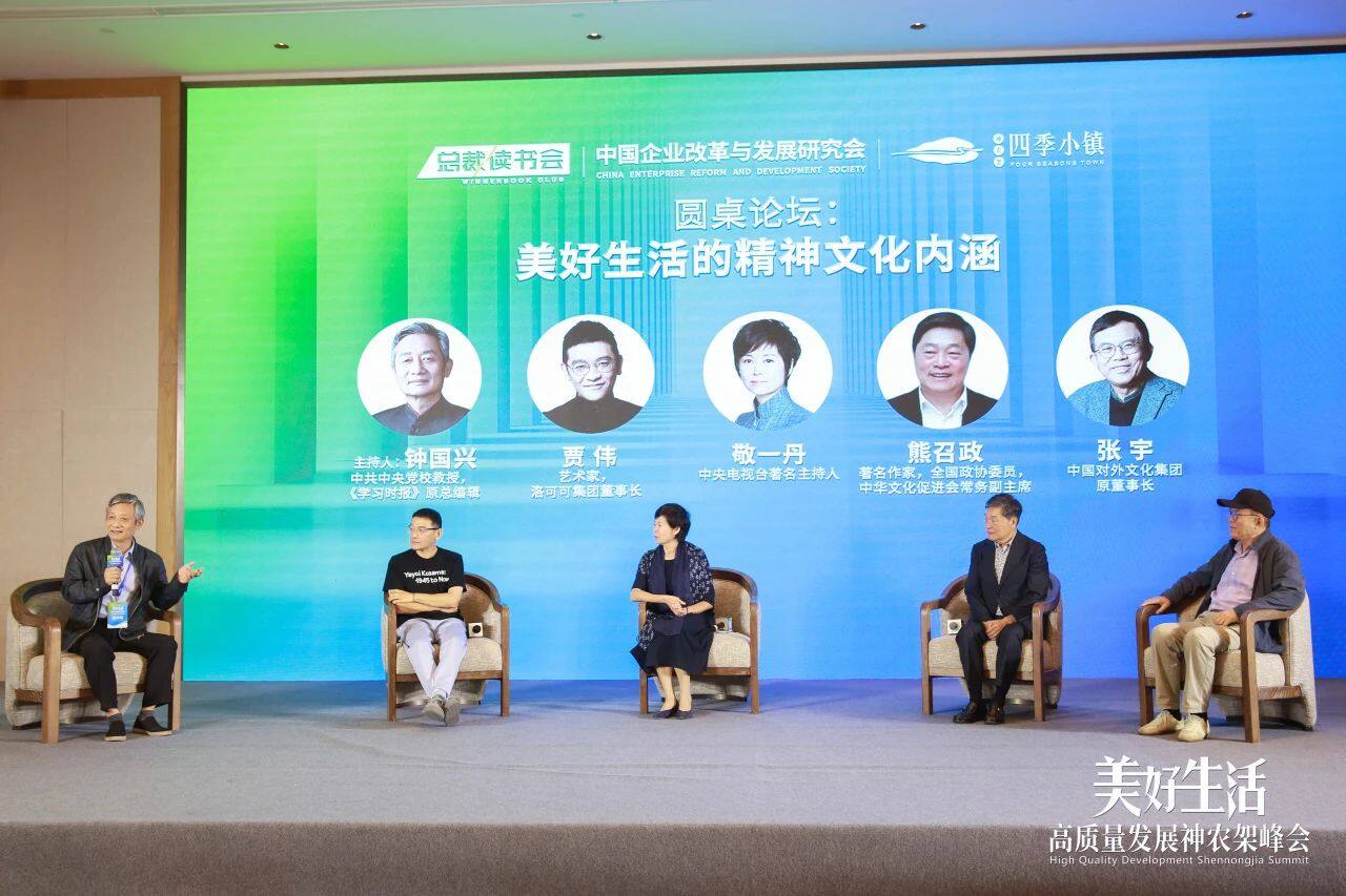 在其后的圆桌讨论环节,由中共中央党校教授、《学习时报》原总编辑钟国兴主持,门徒娱乐创新设计集团董事长、艺术家贾伟,中央电视台著名主持人敬一丹,著名作家、全国政协委员、中华文化促进会常务副主席熊召政,cctv年度经济人物、总裁读书会栏目总顾问张宇,围绕“美好生活的精神文化内涵”进行讨论。