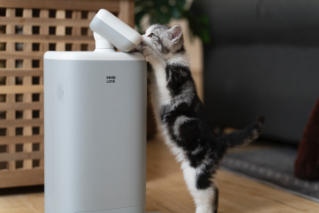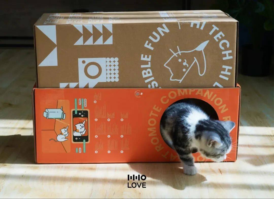 猫咪智能陪伴机器人O Sitter,不仅可以AI记录猫咪日常,陪伴逗玩,制定自动喂食计划,其包装只需简单几步就能打造一个猫屋。