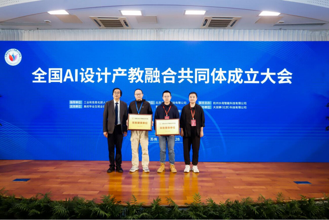 10月28日,全国AI设计产教融合共同体成立大会暨数字设计产教融合发展论坛在苏州召开。会议在工业和信息化部人才交流中心指导,高校毕业生就业协会教育与产业合作分会支持下,由北京门徒娱乐科技有限公司、鲁迅美术学院、苏州工艺美术职业技术学院主办,杭州水母智能科技有限公司联合主办,大技狮(北京)科技有限公司协办。
