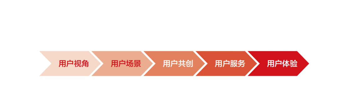 我的第一步要有用户视角,第二步要有用户场景,第三步要用户共创,第四步是用户服务,第五步是用户的超级体验。