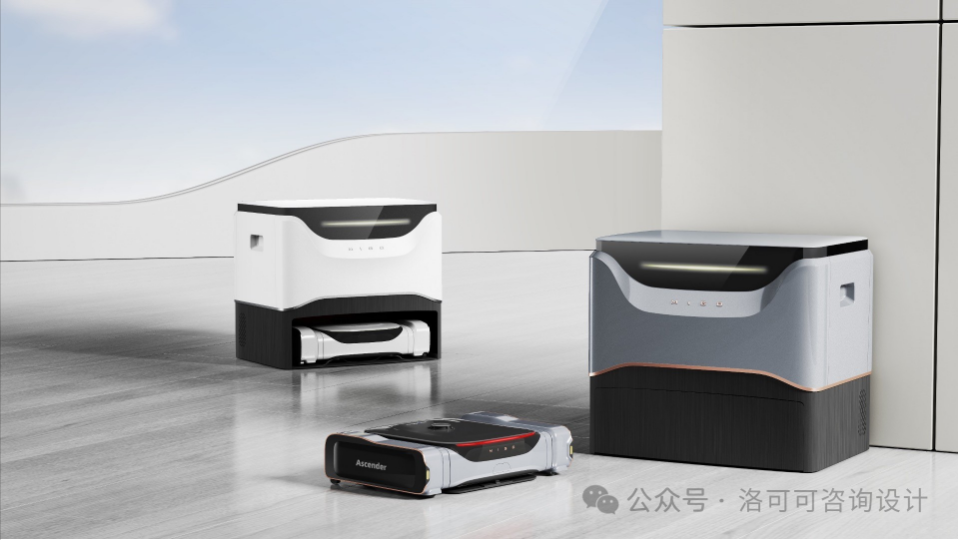 4、对标“跑车”:跳出扫地机器人“应该是什么样”的思维模式,直接以跑车造型为灵感来源,赋予扫地机器人“前脸”、“后脸”、尾灯、镀铬logo等特征,整体线条流畅,让扫地机器人不再沉闷无趣。