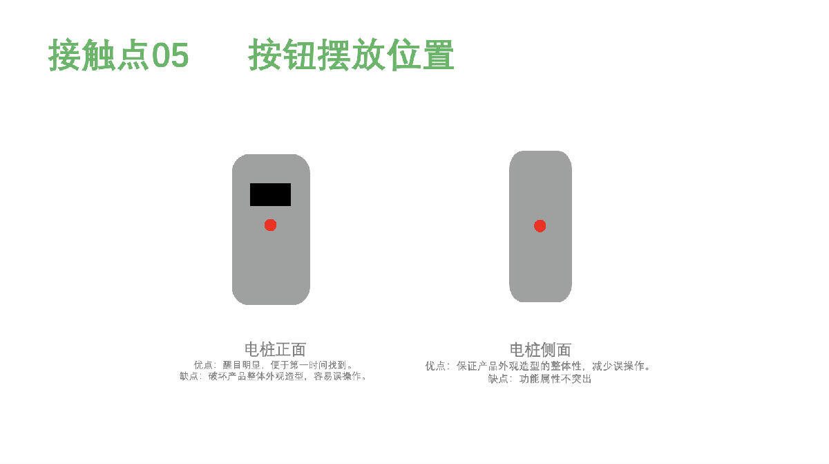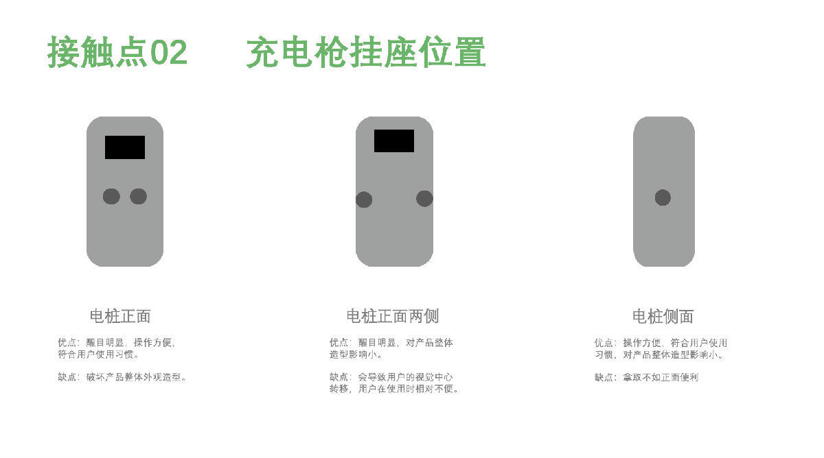 综合以上所有研究工作,门徒娱乐最终确定设计目标为区别于市场竞品的差异化设计、外观稳重安全、具备简洁科技感和安全易维修,并依据次设计出四款创新设计的充电桩产品。