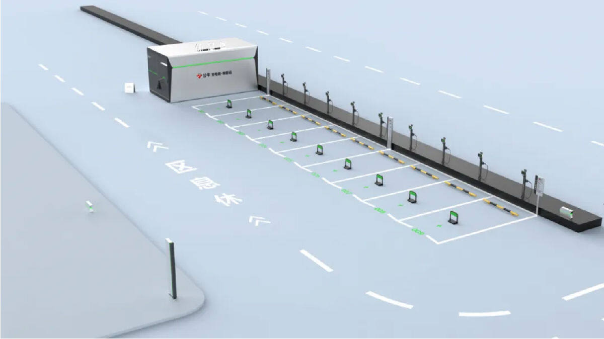 场站设计采用“极致筋线”,整体设计元素和充电桩元素一致,更好的营销桩体配合硬朗外观,去符合大众对公牛的品牌认知。