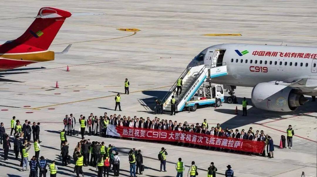 9月19日,C919飞机完成了从成都双流机场飞抵西藏拉萨贡嘎国际机场的飞行任务,这是C919首次飞抵“世界屋脊”青藏高原。