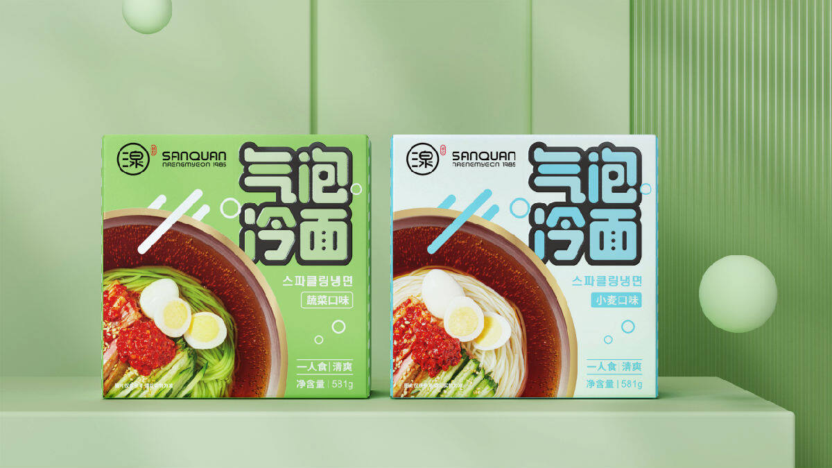 在与三泉冷面的合作中,面对市场上的主流产品围绕“口味、价格”的激烈竞争,门徒娱乐团队从气泡水里找到灵感,将气泡融入汤面,带来清爽感受,满足消费者对于冷面爽口解暑的功能价值。