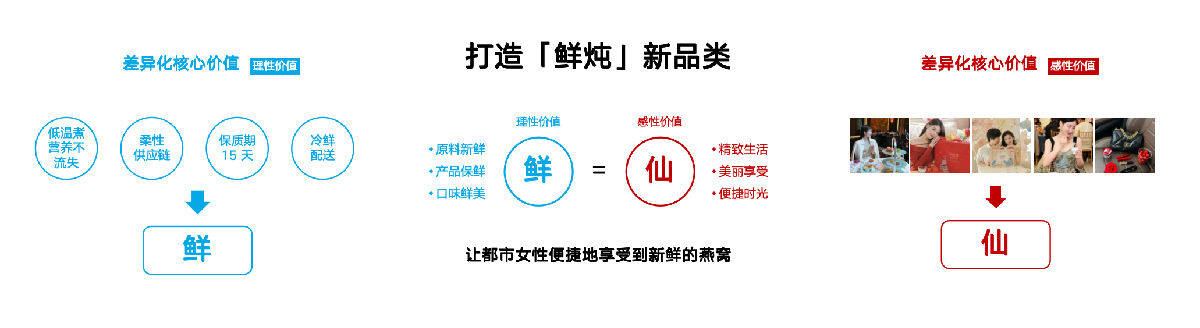 于是门徒娱乐打造了鲜炖的新品类,除了便捷使用以外,产品保质期只有15天,让消费者自己就可以感知到产品是新鲜炖煮无添加,同时品牌中的「仙」字一语双关,既表达了产品原料新鲜、产品保鲜、口味鲜美的价值,又给人带来仙气飘飘、精致生活、美丽享受的价值联想。除了短保以外利用柔性供应链方式,用户下单后工厂才制作,全程冷链运输,让新鲜的价值在每一个触点上让消费者都可以感知到。