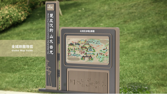 并围绕云龙特色文化元素进行一系列图形演变,引用汉文化“水德”、“土德”、“火德”的典故,采用黑、黄、红三色为基础色,结合汉代特色建筑“汉阙”进行相关延展设计,运用在云龙全域旅游氛围广告、道路道旗、导览手册、全域全景图、标识标牌等场景中。