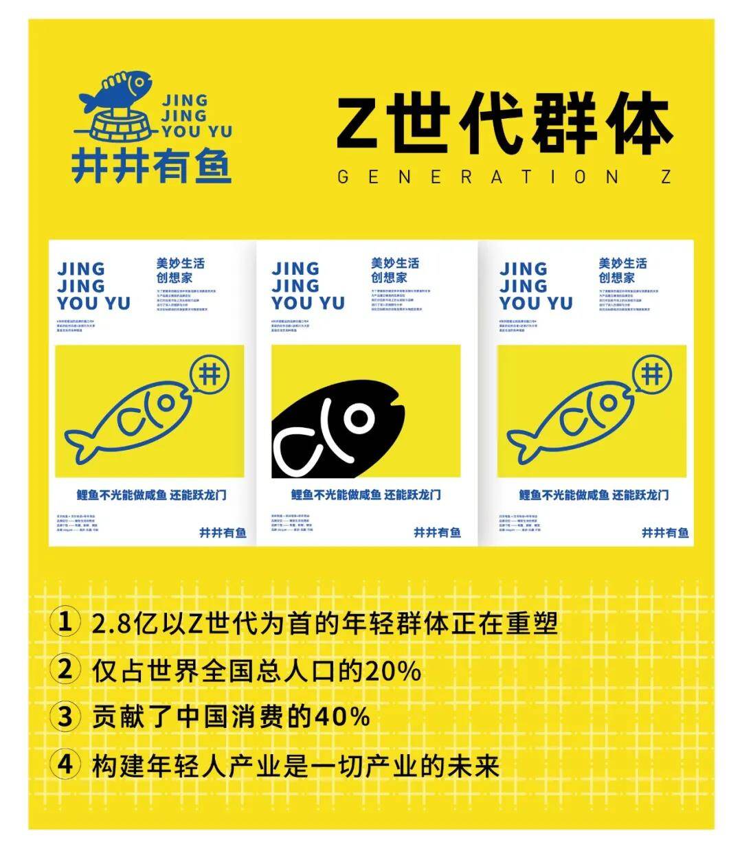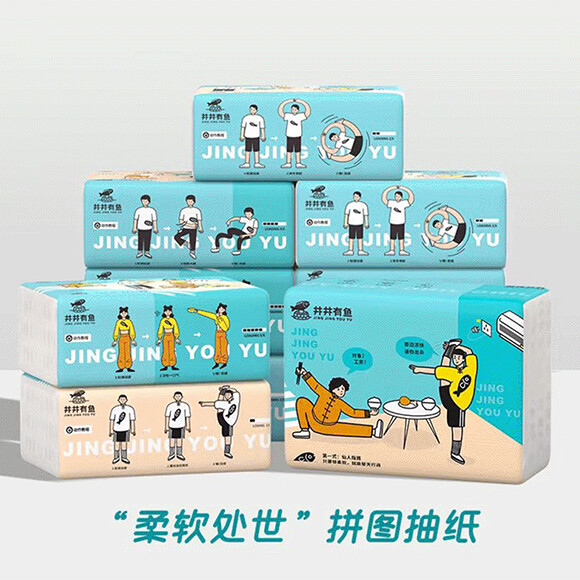 基于市场环境及消费人群,井井有鱼将目标用户定位在“z世代”这个群体,以年轻化视角解读品牌,旨在打造一个个性、多元、有趣的纸巾品牌,重新定义属于新世代的生活美学。